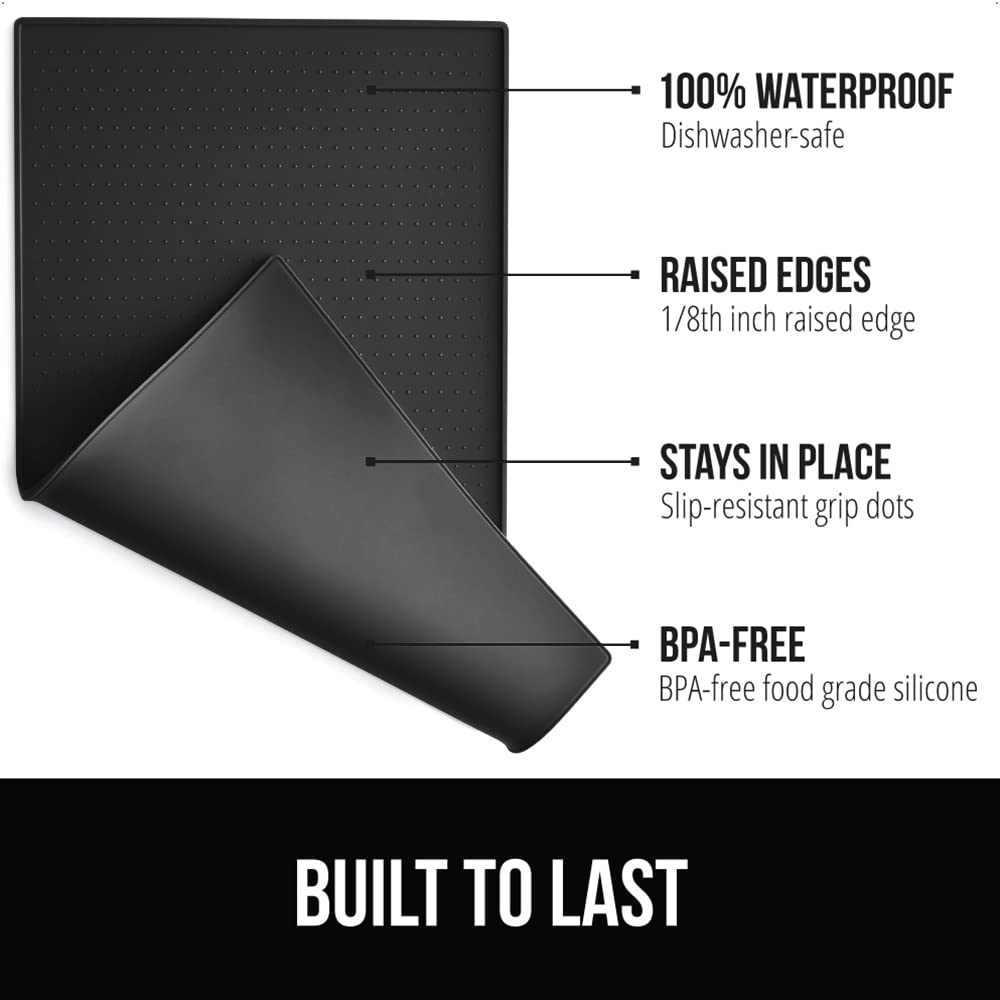 The Gorilla Grip Pet Feeding Mat is made to help protect your floors! It includes a thick, 1/3″ raised lip that helps to contain spills, even with messy pets.