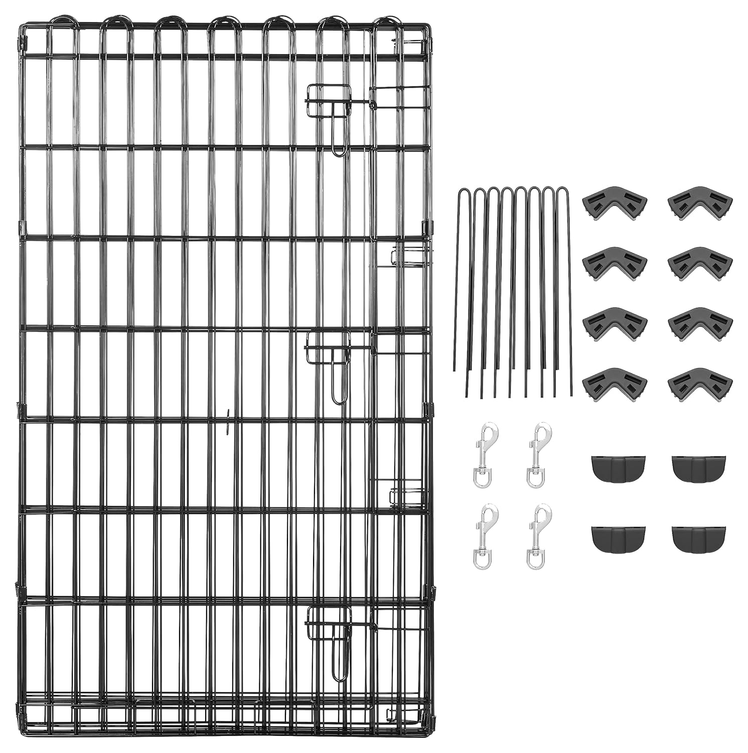 Made of durable iron metal, the sturdy AmazonBasics pet pen holds its shape, offers long-lasting strength, and stands up to everyday use. Even more, its sleek black finish provides rustproof performance and protection against outdoor elements. Note: Use caution when leaving pets unattended outdoors; never leave pets in direct sun with no access to shade.