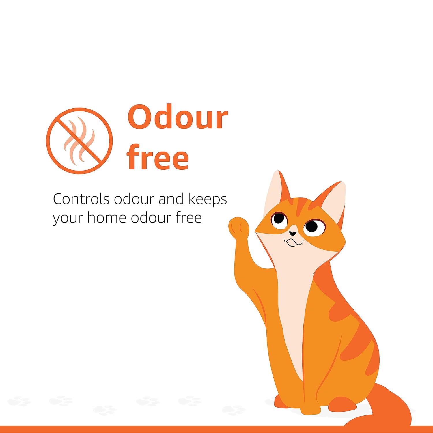 Introducing Amazon Basics Cat Litter. Made out of 100% natural bentonite, Amazon Basics Cat Litter is organic & dust free, making it safe for pets as well as pet owners. The high absorption feature leads to quick clumping upon contact with cat waste. These clumps can be easily scooped out without removing the remaining litter, keeping your pet clean making it easy to maintain hygiene. Amazon Basics Cat litter eliminates odour from cat waste. The fine texture of natural bentonite clay granules is also soft on your pet’s paws.