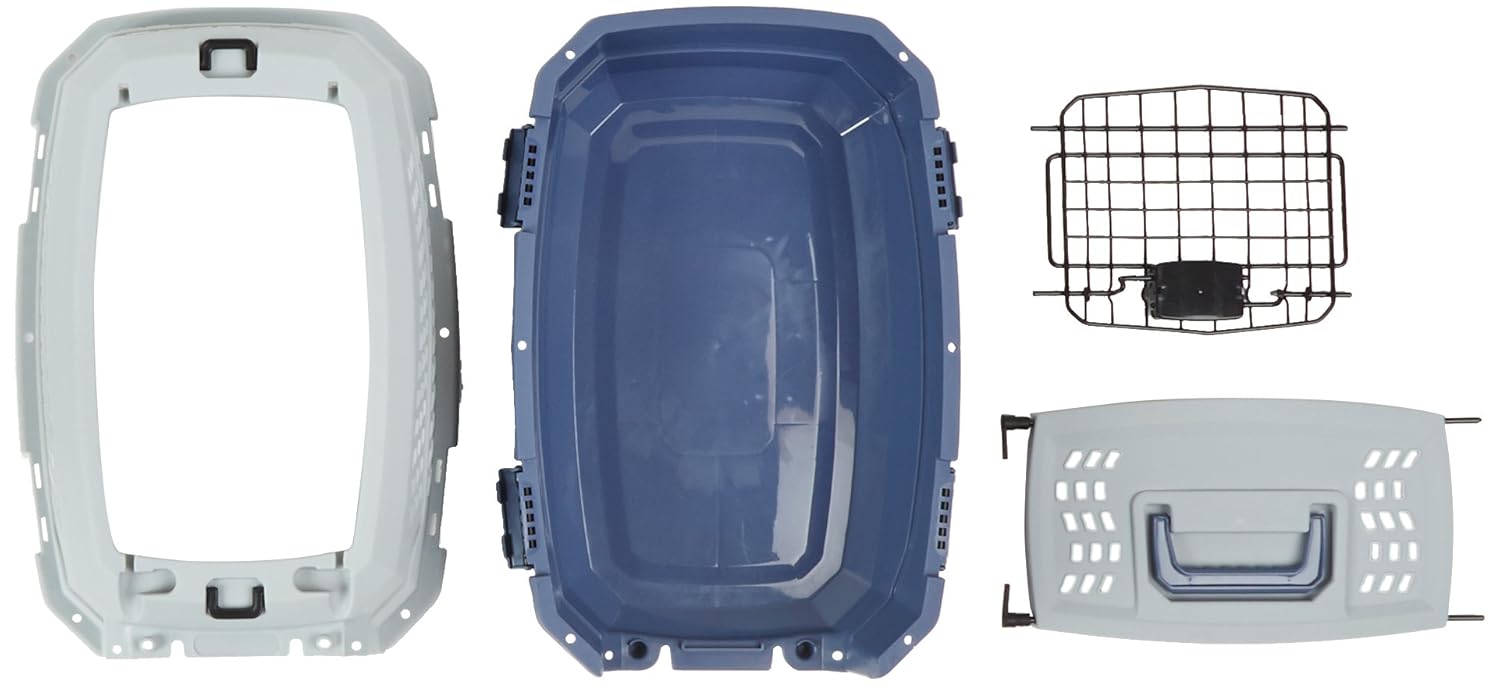 Made of durable plastic with a steel-wire front door, the AmazonBasics two-door top-load pet kennel offers strength, security, and visibility, along with plenty of ventilation on the sides, top, and back of the kennel.
