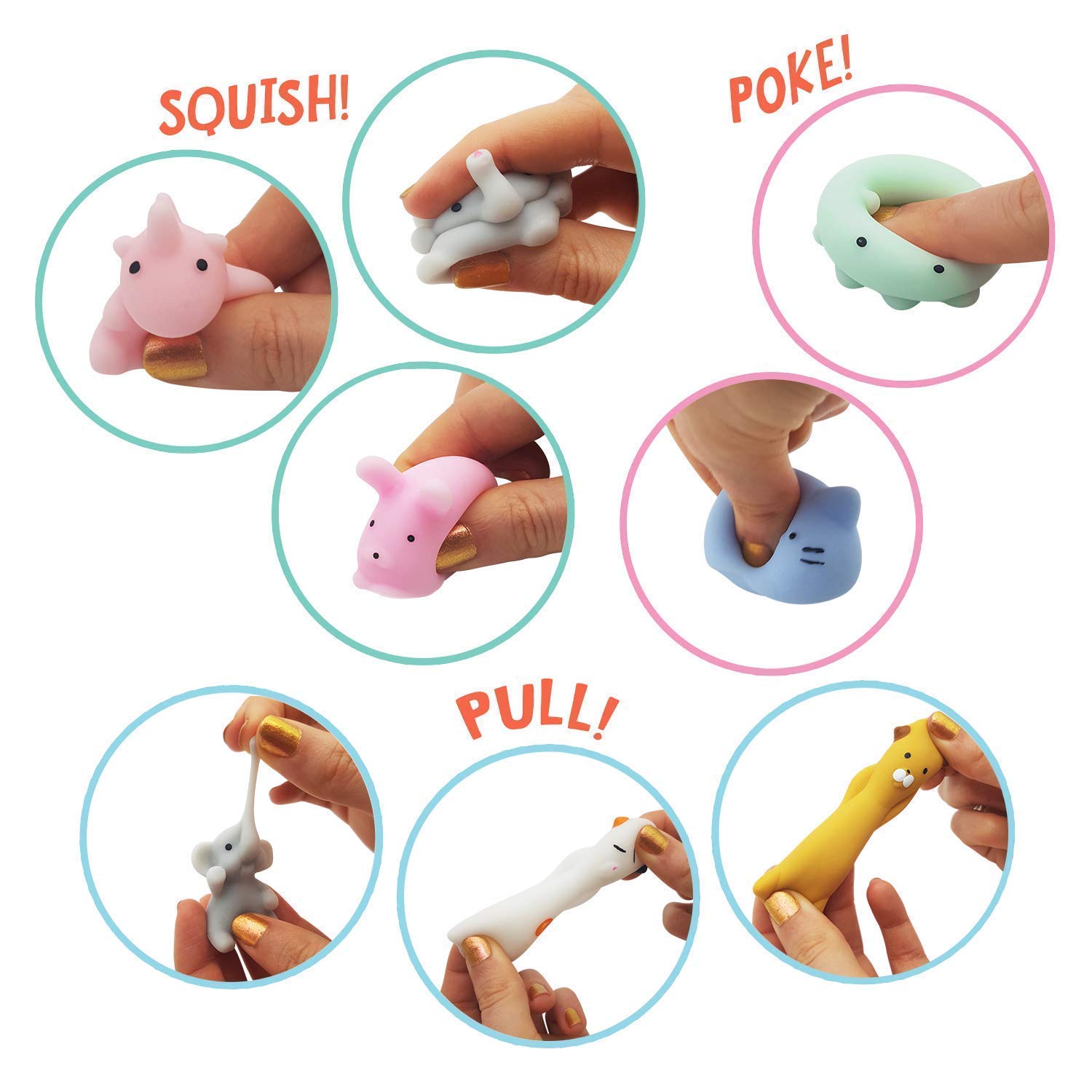 Notice: they are NOT edible. Please do NOT put into your mouth. NOT suitable for children under 3 years old. If over-squeezed, the paint on the squishy may fall off