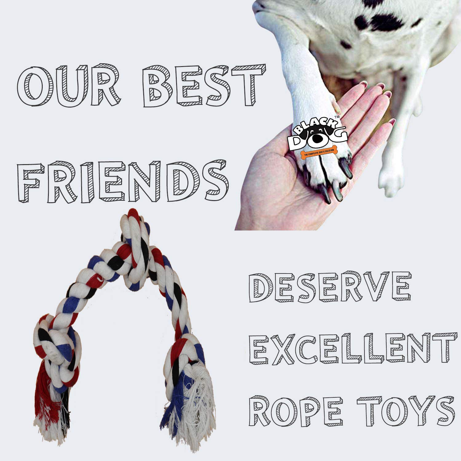 BLACK DOG Cotton Durable Dog Chew Rope Toy for Small to Medium Dogs (Colour May Vary)