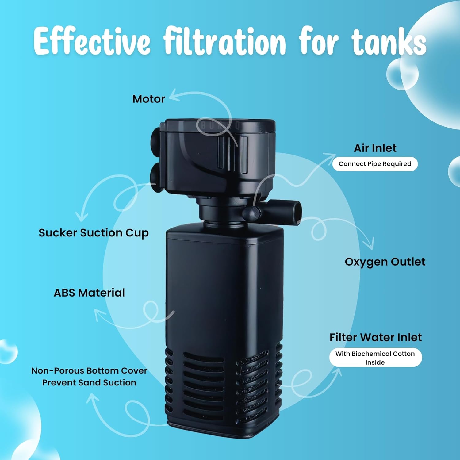 SIMPLE TROUBLESHOOTING IF NOT WORKING – If you don’t see water movement or air bubbles, check for a blocked impeller, a clogged pipe, or a submerged outlet. Cleaning or adjusting these parts usually gets the filter running again quickly.
