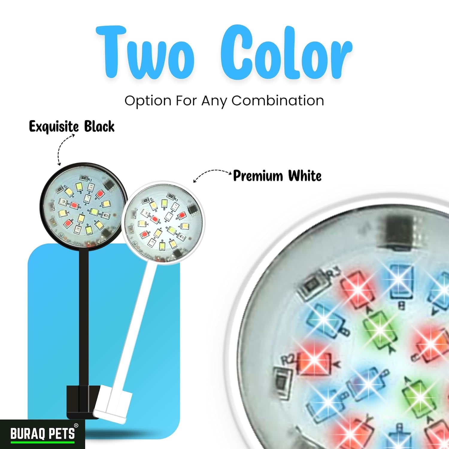 WRGB MULTICOLOR LED 3 LIGHTING MODES – This LED light features three color settings: White+Blue, RGB, and WRGB. These lighting modes enhance your fish’s natural colors, brighten up your aquarium, and support healthy plant growth and perfect for nano tanks and bowls.