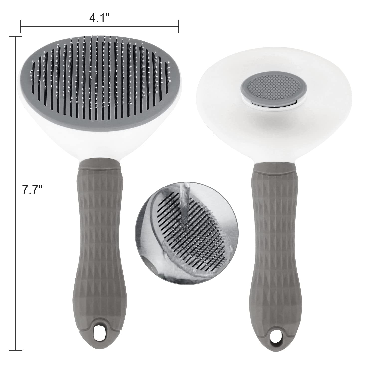 Comfortable and Nonslip Handle. Our cat shedding brush is designed with a comfort-grip and nonslip handle, and this self cleaning cat brush also has a massage function for your hand and you won’t get tired easily when you brush your pet.
