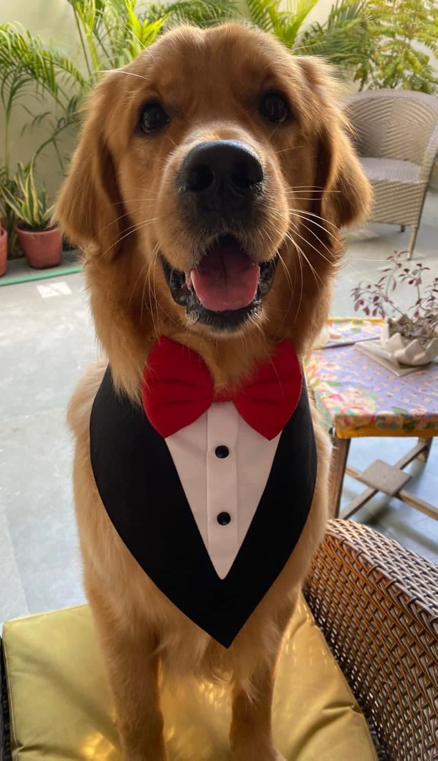 Please check the measurements before placing the order. Neck Size of Small Tuxedo Bandana : -10”-13” ; Neck Size of Medium Tuxedo Bandana : – 13”-16” ; Neck Size of Large Tuxedo Bandana – 17”-21” ; Neck Size of XL Tuxedo Bandana – 19”-24” .