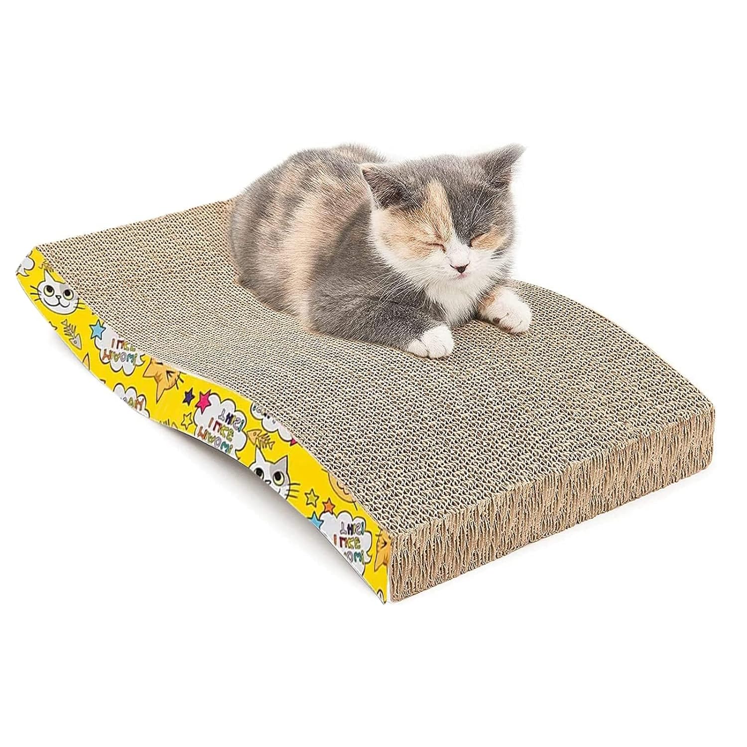 Durable & Natural Material: Made of heavy duty corrugated and 100% recycled cardboard, so the cardboard cat scratcher is strong enough to resist the sharpest claws for a fair enough long time. It is also safe and non-toxic. Even the glue used in the construction is corn-starch.Perfectly healthy for your adorable cats.