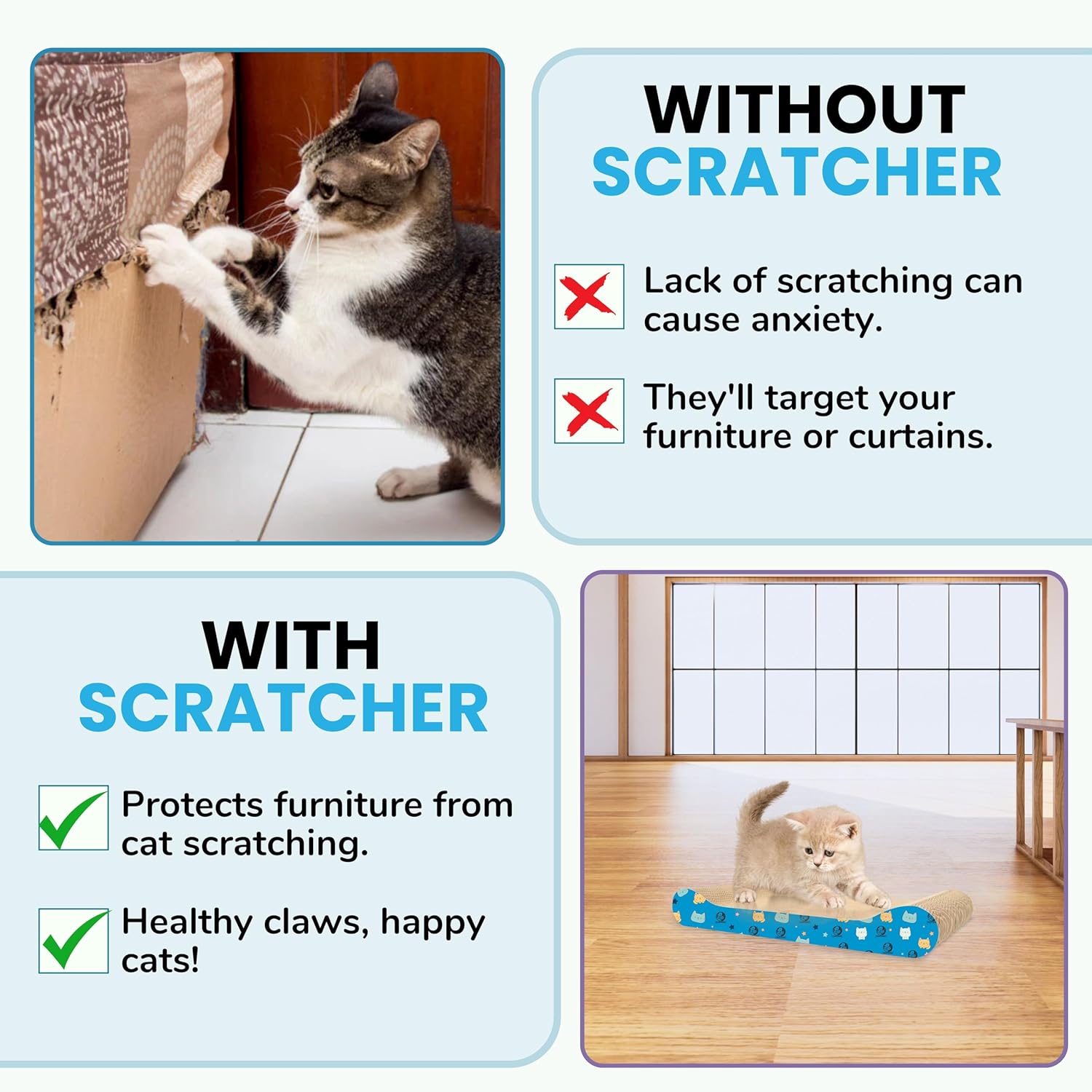 【PROTECT YOUR FURNITURE】The cat scratcher offers your cats a suitable place to scratch without leaving you with damaged furniture.