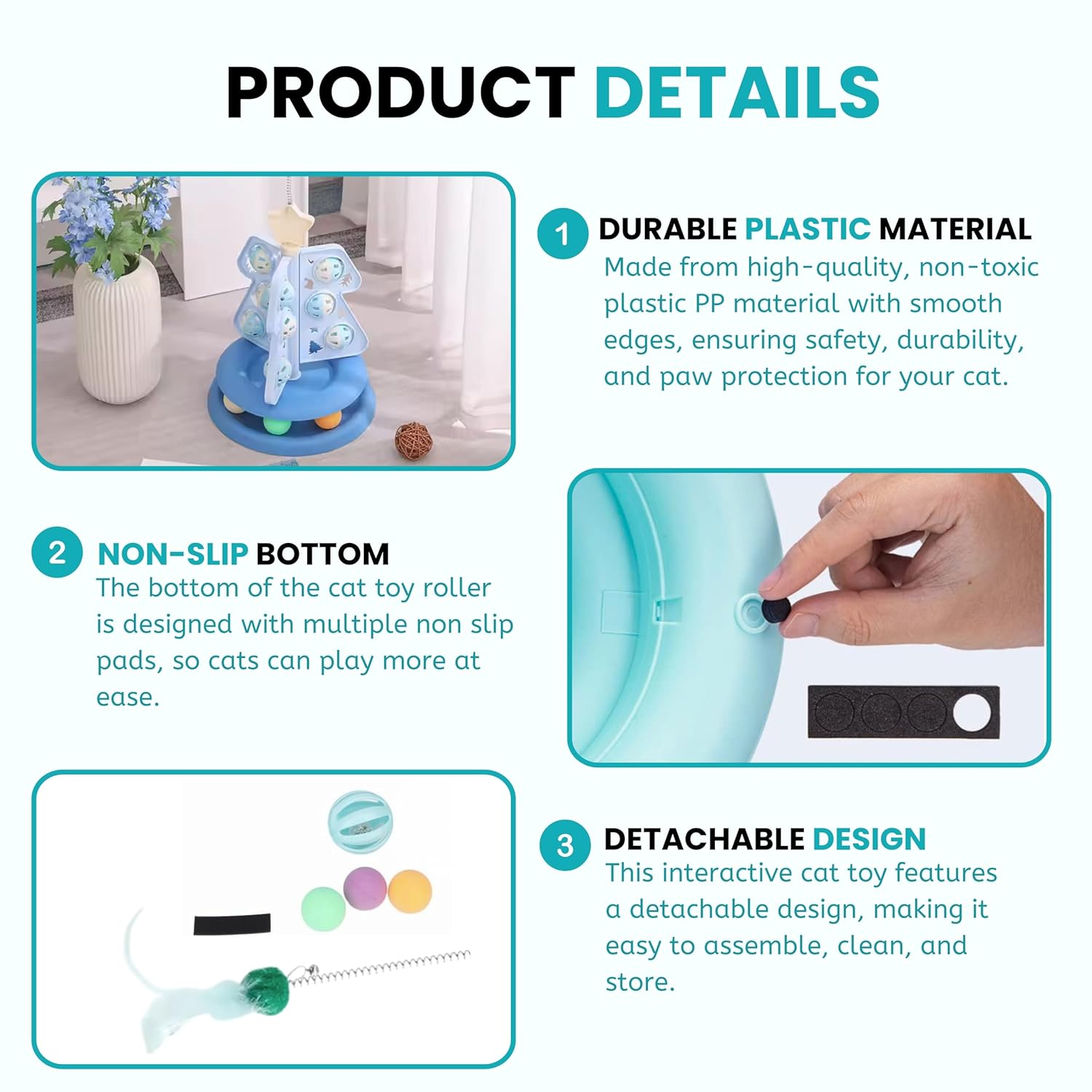 Built-In Rolling Tracks: Smooth, enclosed tracks allow balls to spin freely, encouraging active play and keeping your cat entertained for hours.