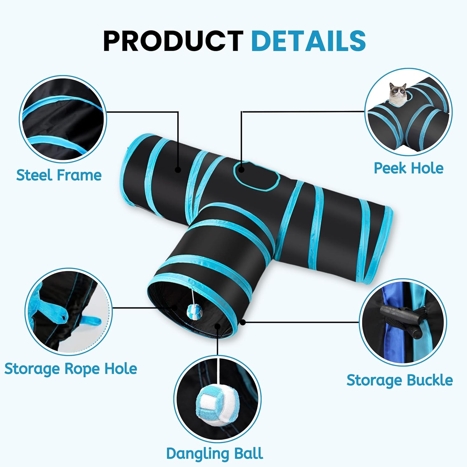 It’s the best way to give your cat more fun. with 3 connected tunnels, it appeals to cats’ natural instinct to hide in mysterious places. with a soft ball toy, it meets the nature of the cat’s self-entertainment.