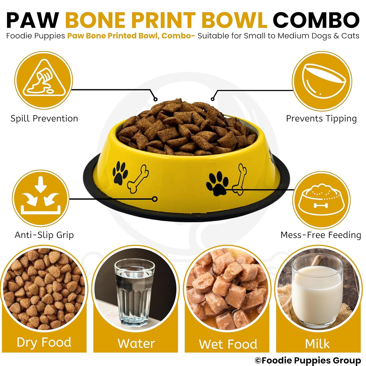 【Paw & Bone Print Design】Paw & Bone print design with a polished colour layer on it attracts your dog. Polished interior resists sticking and cleans up quickly.