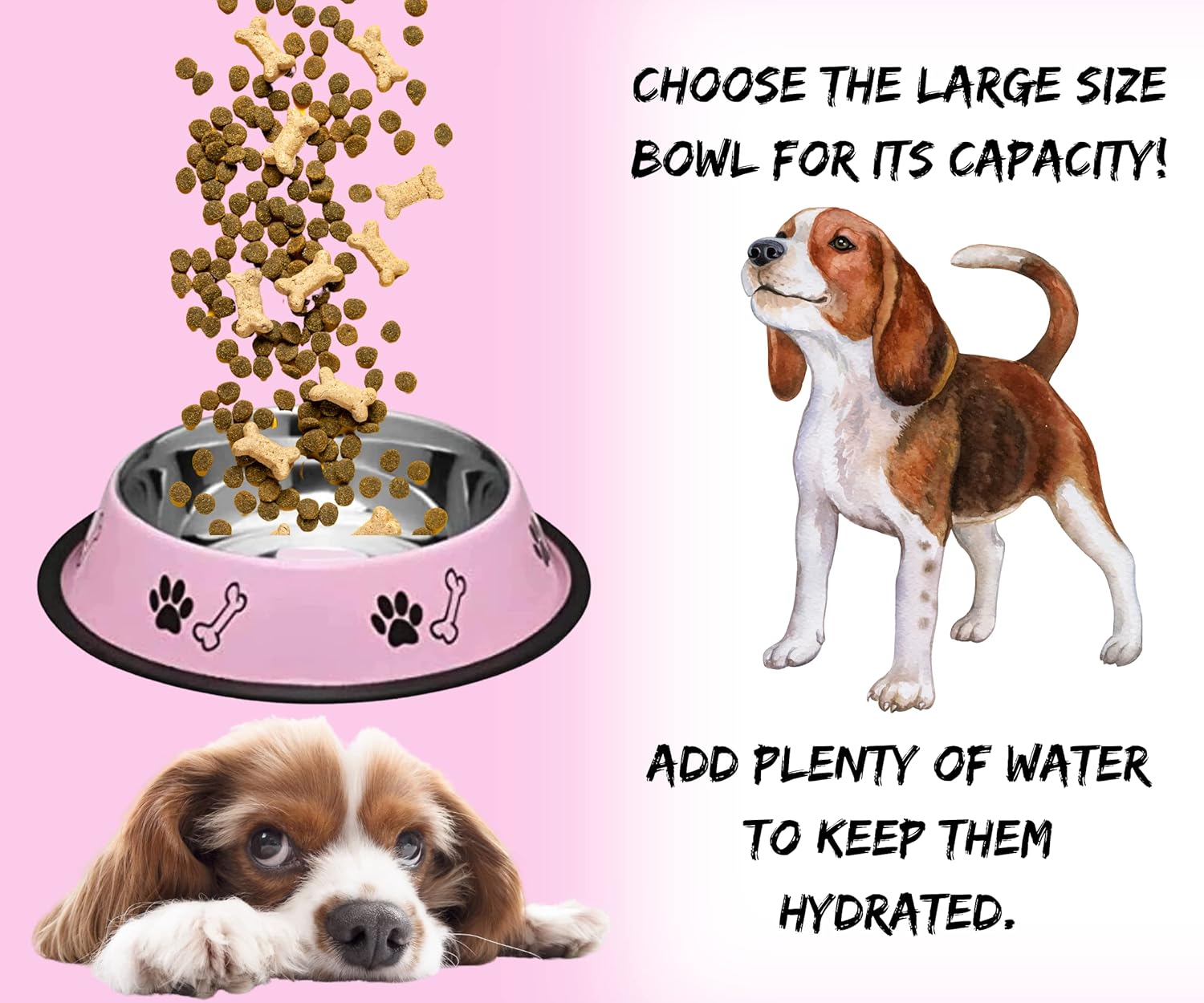 【Stainless Steel Material】Our dog bowls are made of high-quality stainless steel and an anti-slip rubber base. Anti-rust, anti-oxidant, and corrosion-resistant, durable strong bowl, giving a safe and healthy diet for your pets.