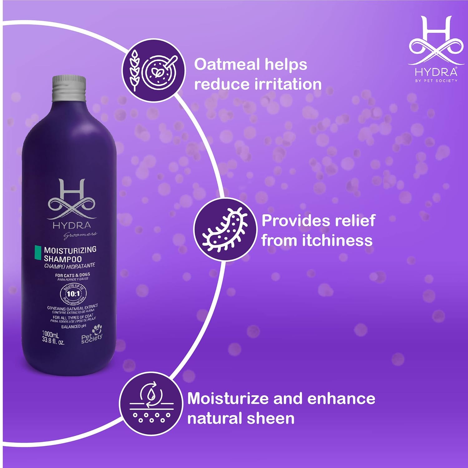 Hydra oatmeal moisturizing shampoo along with jasmine, the shampoo also contains other natural ingredients in dog and cat shampoo that eliminate odor and make your dog feel fresh. Also provides relief from itchy and sensitive skin.