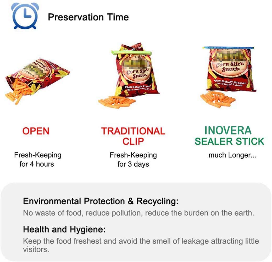 Our bag sealing sticks are with good airtight properties, Keep the freshness of the food as long as possible, suitable for snack bags, cereal bags, fresh and frozen foods, pet food bag etc. Clips kitchen gadgets for you to keep different foods fresher longer and contained in the pantry, fridge, or freezer. Suitable for seal chip bags, snack bags, cereal bags, fresh and frozen foods, baking, dry ingredients bags, pet food bag etc. Designed to be stored nice and neatly in drawers without sacrificing on drawer space. Take them on a road trip to seal those snacks without worrying about it spilling all over. Freezer and dishwasher are safe.