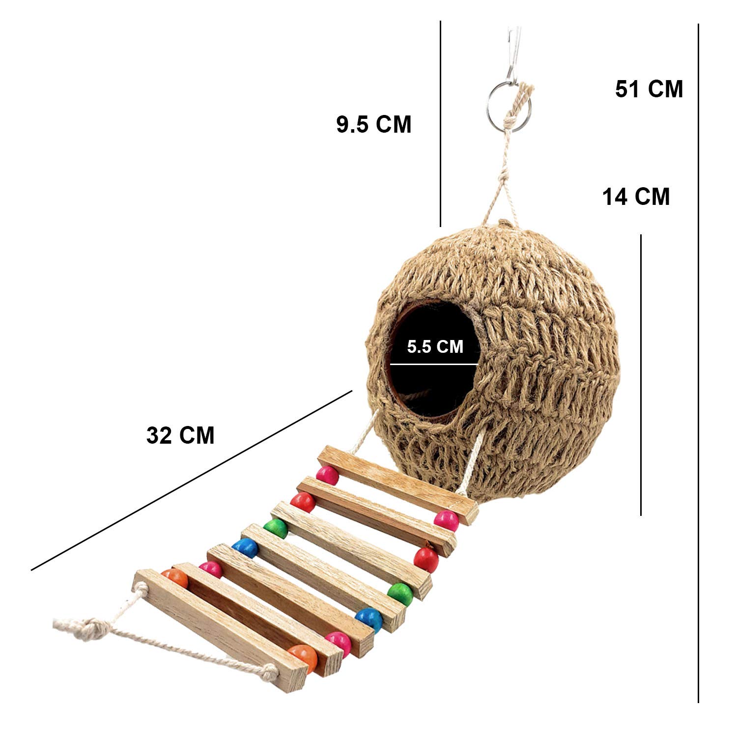 Fun hideaway for your bird to nest & climb in and out of.Your bird will benefit from hours of mental stimulation and rugged physical play.