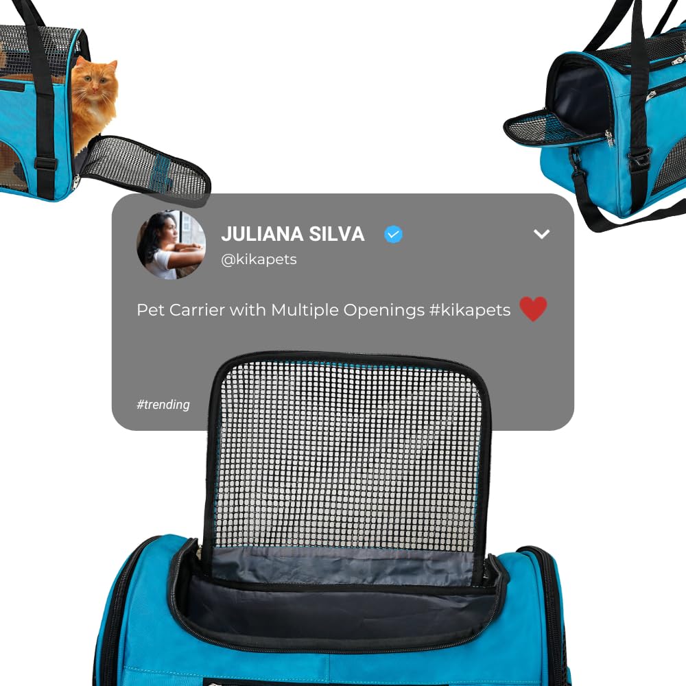 The KIKA Pets Airline Carrier is a portable, folding, and breathable pet carrier designed for small pets like cats, dogs, rabbits, and birds. Airline-approved and suitable for small breeds such as Shih Tzus, puppies, and kittens, it offers comfort and convenience for travel.