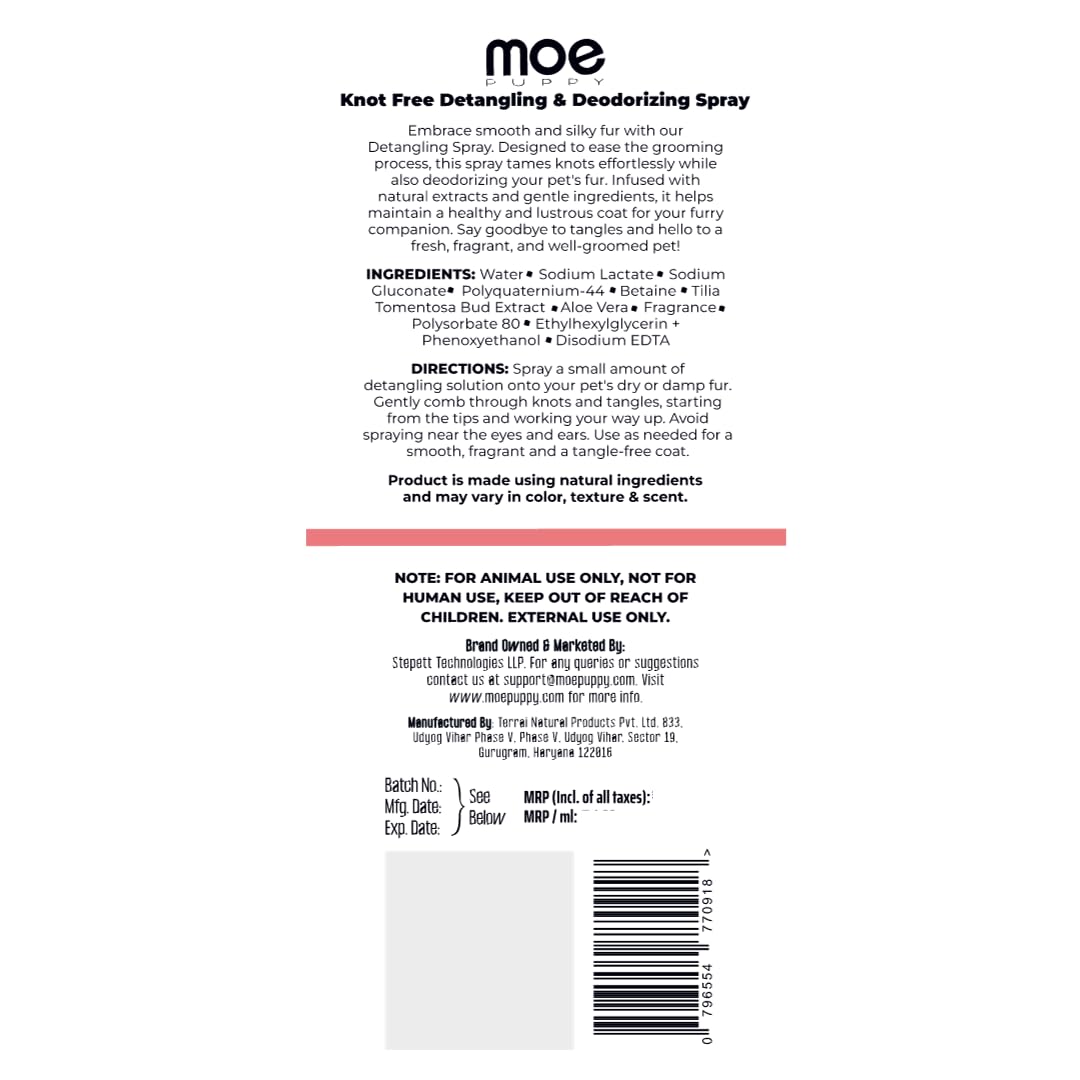 Easy Application: Designed for convenience, Knot Free features a spray nozzle for effortless use. Simply spritz, comb, and enjoy a pet with tangle-free fur. It also works as a dog odour remover, keeping your furry friend fresh and clean—perfect as a pet odour remover.