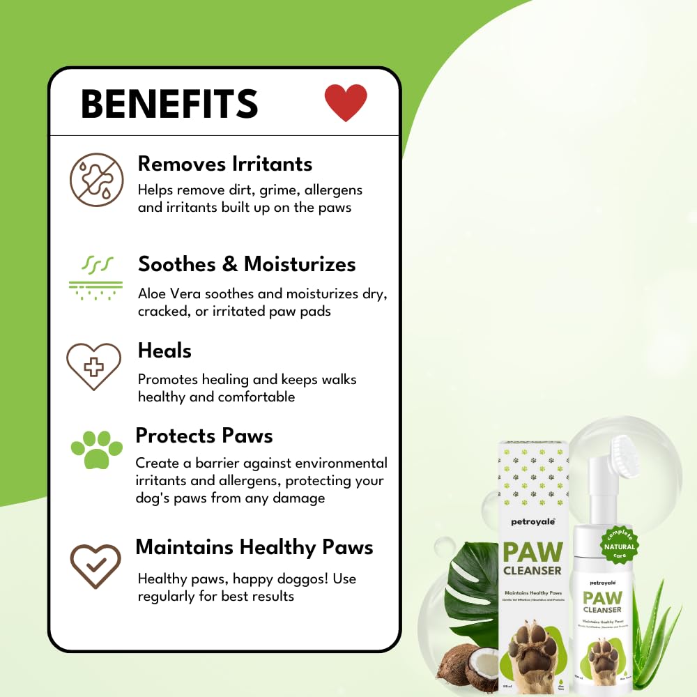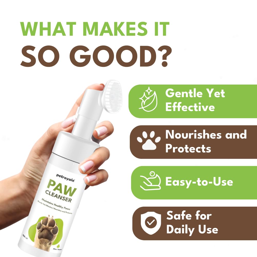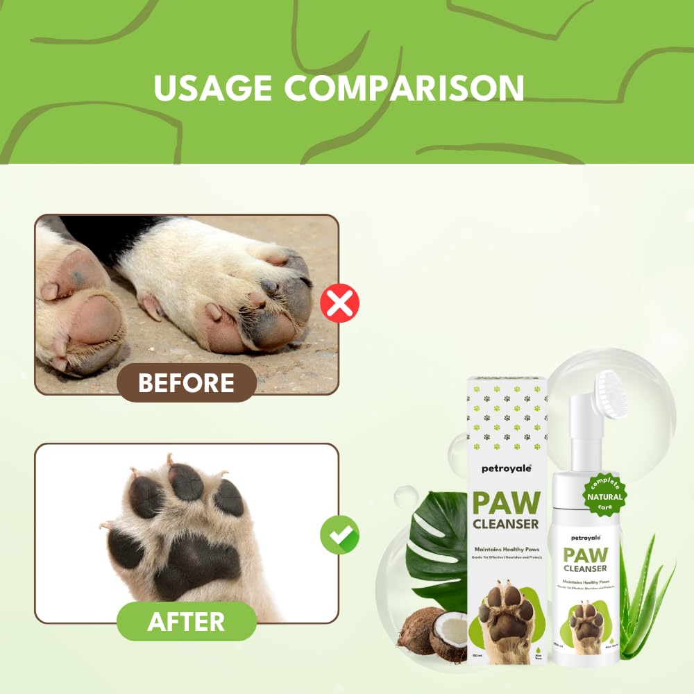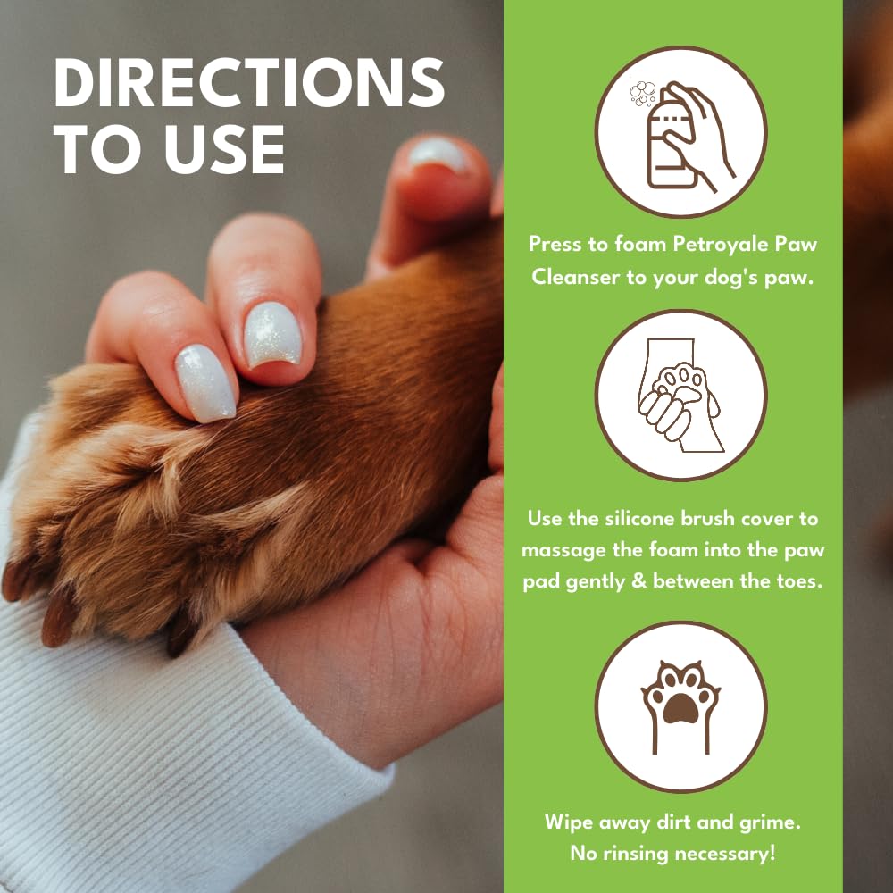 🌱 GENTLE YET EFFECTIVE FORMULA: Our Petroyale Paw Cleanser for dogs and cats removes dirt, grime, and allergens from paws and feet. The natural ingredients like Aloe Vera and Coconut Oil soothe and nourish, making it a good paw cleaner for sensitive paws.