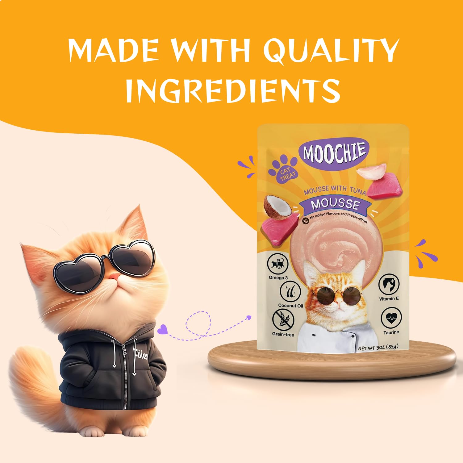 MOOCHIE Wet Cat Food Grain-Free Gravy Cat Treat Mousse with Tunna no Added Flavour and Preservatives Size 85 g (12 Pouch X 85 g.)