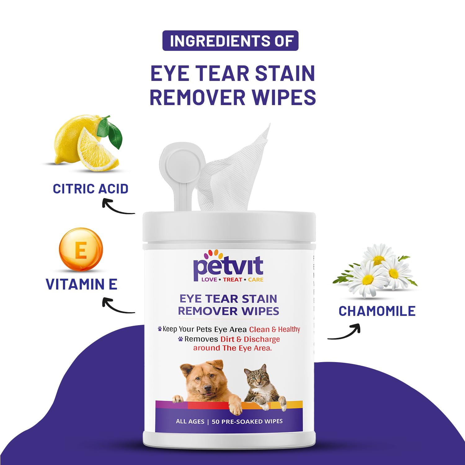 Petvit Pet Wipes for Cleaning Eye Tear Stain | Natural Dog Wipes for Grooming | Fresh Scent Wet Wipes for Dog | Easy to Use | All Dog Breeds | Vitamin Enriched | Pack of 1 | 50 Wipes