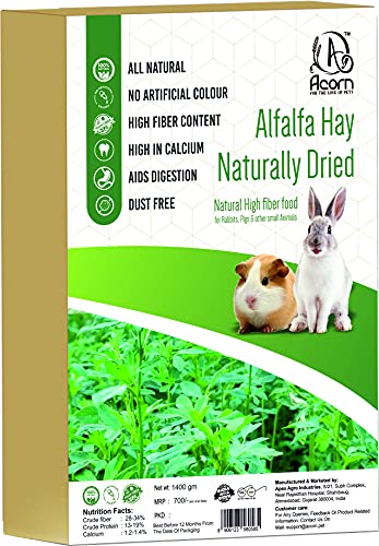 Specification: Acorn Alfalfa Hay Naturally Dried (1.4 Kg) | Food For Rabbits, Guinea Pig, Hamsters And Other Small Animals | High Fiber Food | Pesticides Free |, 1 Count