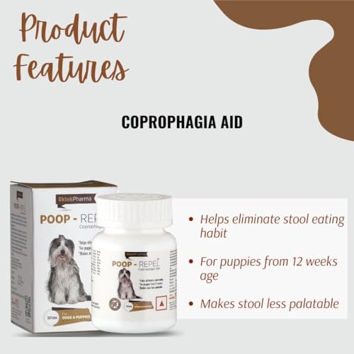 Coprophagia (/ˌkɒprəˈfeɪdʒiə/) or coprophagy (/kəˈprɒfədʒi/) is the consumption of feces. It mainly refers to consumption of one’s own poop and this habit makes the owner miserable as this habit is unhygienic for dogs, puppies and the owner. Poop-REPEL discourages the behavior by making dog stool less pleasant to eat Poop-REPEL has been blended with lachrymatory agent which gives mild irritation and burning sensation to the eyes , if own stool is eaten by the dogs. Poop-REPEL tablet is enriched with minerals and special enzyme which breaks down starches and improves digestive system. Poop-REPEL tablet is enriched with minerals and special enzyme which breaks down starches and improves digestive system.
