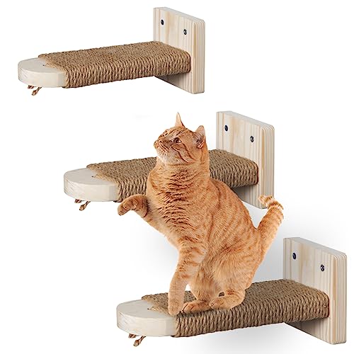 Specification: AntFort 3 Pack,Cat Climbing Stairs Shelf Wall Mounted, Cat Stairway with Sisal Rope Scratching for Cats Perch Platform, Cat Wall Solid Wood Furniture, Cat Wall Steps do not Need to be Assembled.