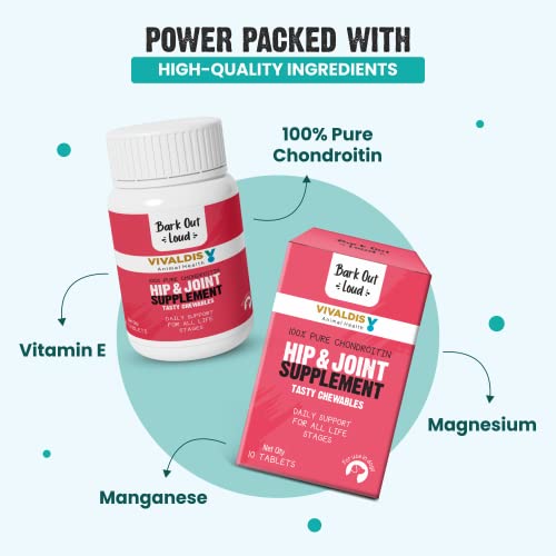 Specification: Bark Out Loud by Vivaldis – Hip & Joint Supplement for Dogs – Contains Pure Chondroitin, Vitamin E & Magnesium – Pet Health Supplements (10 Tablets)