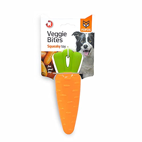 BarkButler x Fofos Vegi-Bites Carrot Loud Squeaky Dog Toy, Orange (L) | Medium-Large Dogs (10-30kg) | Good for Teeth & Gums | Floats on Water | Soft Foam & TPR Mix | Suitable for All Dog Breeds