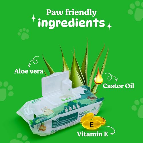 Specification: Basil Daily Pet Wipes | Wet Wipes for Dogs, Cats, Puppies & All Pets | Enriched with Castor Oil, Aloe Vera, Vitamin E | Non-Toxic & Gentle | Gentle Grooming & Deodorising Wipes | 80 Wipes x Pack of 2