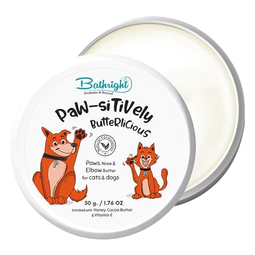Specification: Bathright Pet Paw Butter 50 gm | Natural Paw Butter for Dogs & Cats | Moisturizes, Nourishes & Softens Dry Chapped Paws | Paw Cream with Honey, Cocoa Butter, Vitamin E | Pet Care Grooming