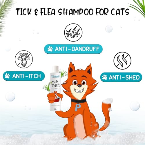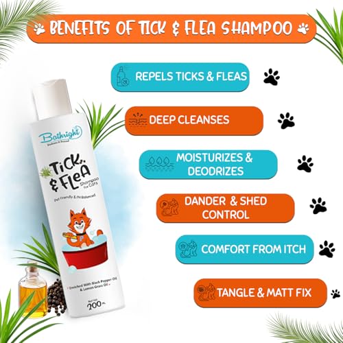 Specification: Bathright Tick & Flea Shampoo For Cats- 200 Milliliter|Natural & Pet Skin Safe|Lemongrass & Black Pepper Oil|Ph Balancing|Pet Shampoo For All Cats