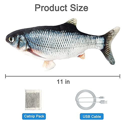 Specification: Bihuo Electric Moving Fish Cat Toy, Rechargeable Realistic Flopping Fish with Catnip, Interactive Cat Toys Plush Simulation Wagging Fish Kick Supplies Motion Kitten Toy (Black)