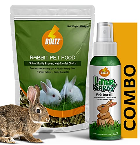 Specification: Boltz Premium Combo of Pellet for Rabbit, Small Animal Food & Litter Spray (1200Gm & 200Ml), Perfect Combination of Pet food and Smell Free Envernoment Rabbit Litter Spray(200ml) + Rabbit Food(1200Gm)