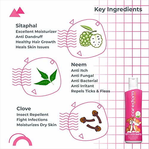 TICK & FLEA CONTROL: Caredom’s gentle puppies shampoo features organic Neem, Sitaphal, & Clove extracts to effectively tackle ticks & fleas.