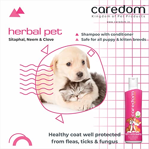 Caredom Herbal Pet Shampoo for Puppies & Kittens | Anti Ticks & Fleas Puppy Shampoo & Kitten Shampoo | Anti Itch & Anti Fungal | Allergy Relief with Natural Neem, Sitaphal & Clove Extracts (200ml)