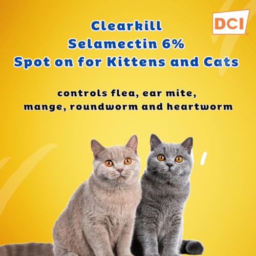 Clearkill SMT Selamectin 6% Flea Spot on 0.25 ml, Treatment of Ear mite, Mange, Roundworm and heartworm for Kittens & Cats up to 2.5 kg