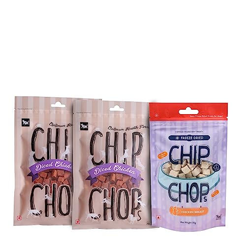 Specification: Combo of Chip Chops Diced Chicken Dog Treat-2 pcs and Freeze Dried Chicken Breast Dog Treat-1pc, Highly Nutritional & Digestible, Suitable for All Dog Breeds-(Pack of 3)