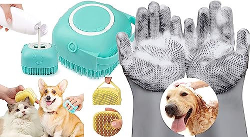 Deriz 1 pair of silicon dog bathing hand gloves + Pet Dog Bath Brush Soft Silicone Dog Shampoo Brush, Brush Hair Fur Grooming Cleaning Brush Soft Shampoo Dispenser Multi