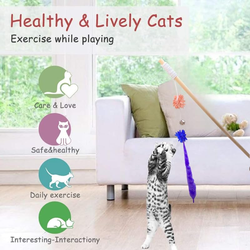 Material: The cat toy interactive stick is made of safe and non-toxic materials.