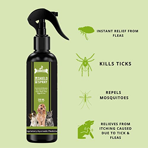 Dogz & Dudez Neem Shield Tick, Flea, Flea Egg Spray for Dogs and Cats 200 ml | Quick Results |Treatment, Preventive, Ecoparasite Killer and Repellent Spray Botanical Oils