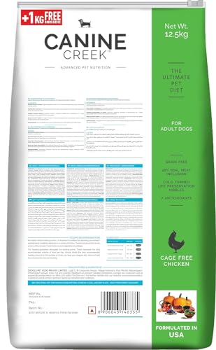 Specification: DynamicSales (India) Canine Creek Ultra Premium Adult Medium & Maxi Dry Dog Food,12.5kg (1Kg Free Inside Total 13.5Kg Pack)