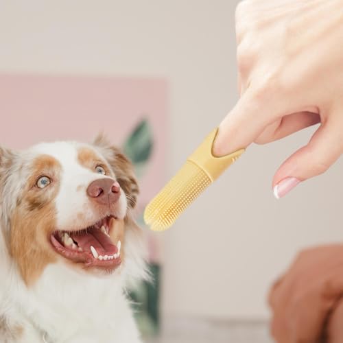 Enakshi® Dog Finger Toothbrush 360° Cleaning for Cat Small Dogs Medium and Large Dogs Yellow|Pet Supplies | Dog Supplies | Health Care | Oral Hygiene