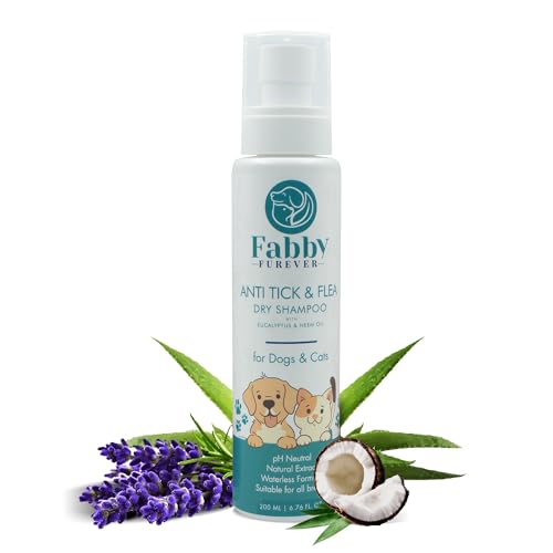 Specification: Fabby Furever Anti Tick & Flea Waterless Dry Shampoo for Dogs, Cats and Pups of All Breeds, Effective for Itching, Dry Skin and Infections, Daily Use, Natural and Safe for Pets, 200 ml