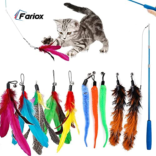Eco-friendly – Our 11 pieces cat toys set include 1 durable cat wand and 10 pcs teaser baits (natural feathers and worms). These kitten toys are made of safe, non-toxic, and healthy for your pets. Most of the feathers have bells, unique style and vivid design, which can increase cats’ interest.