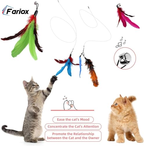 Specification: Feather Teaser Cat Toy, 1 Pcs Retractable Interactive Cat Teaser Rods, 10 Pcs Replacement Colorful Feather Refills with Bells, Feather Dangler Funny Exercise for Indoor Cat Kitten Catcher Cat Toys