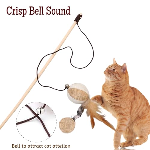 {INTERACTIVE PLAY}: Feather and bell attachments stimulate hunting instincts, promoting active play and ergonomically designed handles ensure a comfortable hold during playtime.