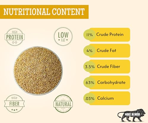 Specification: Foodie Puppies Foxtail Millet Kangni Seeds Bird Food – (1Kg, Pouch), High-Fiber Balanced Nutritious Daily Diet for All Bird Types