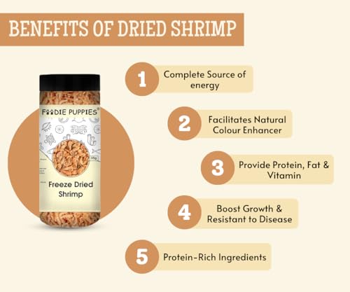 Specification: Foodie Puppies Freeze Dried Shrimp 35g – Food for Discuss, Arowana, Cichlid, Flowerhorn, Oscar Red Parrot & Other Carnivorous Fish