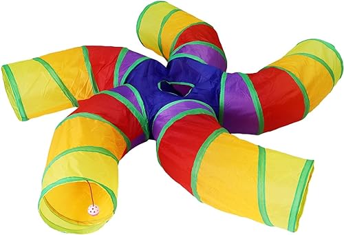 Specification: Foodie Puppies Interactive Foldable Hiding 5-Way Curved Tunnel with Hanging Ball for Cats (Swirl Patels Tunnel) | Puzzle & Training Cave Suitable for Cat, Kitten, Rabbit, Guinea Pig & Puppies